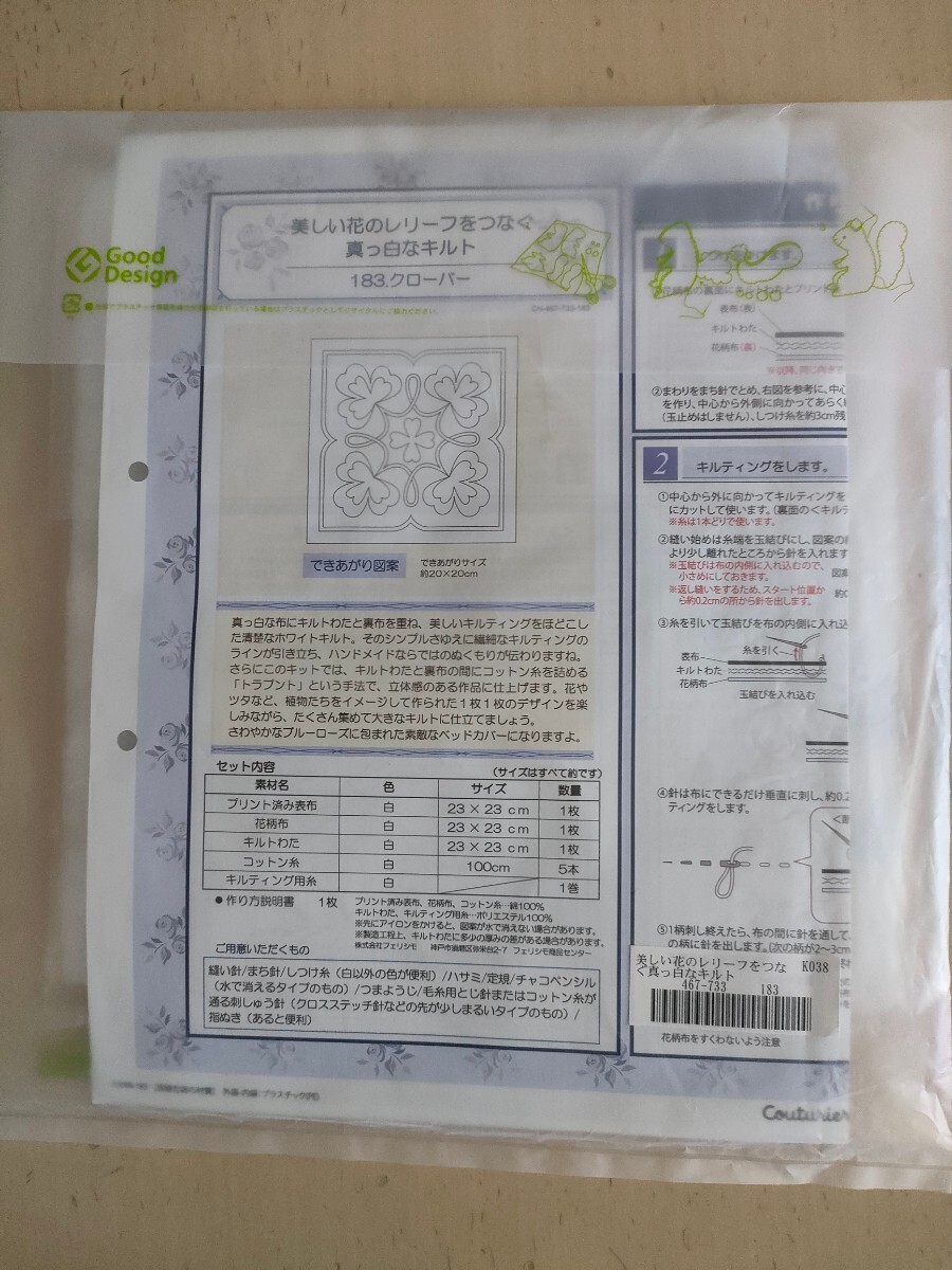- フェリシモ 未使用未開封 美しい花のレリーフをつなぐ真っ白なキルトの会 手芸キット ホワイトキルト クチュリエ 183