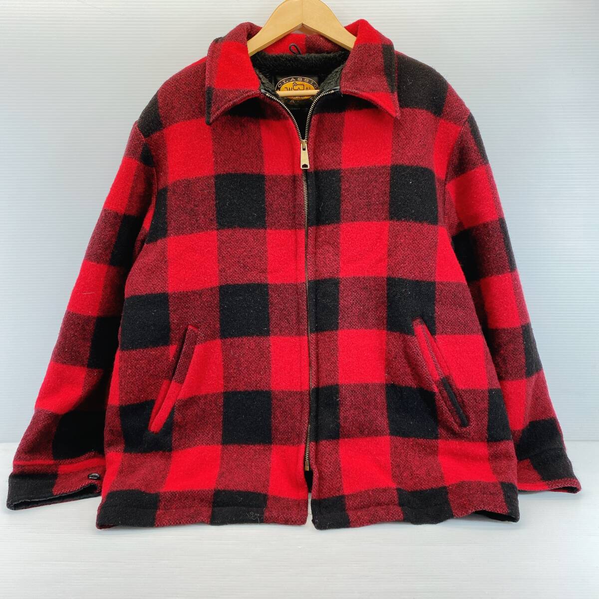 - ■ 良好 ウールリッチ ブロックチェック ウール ジャケット 裏ボア 赤 黒 メンズ WOOLRICH ■