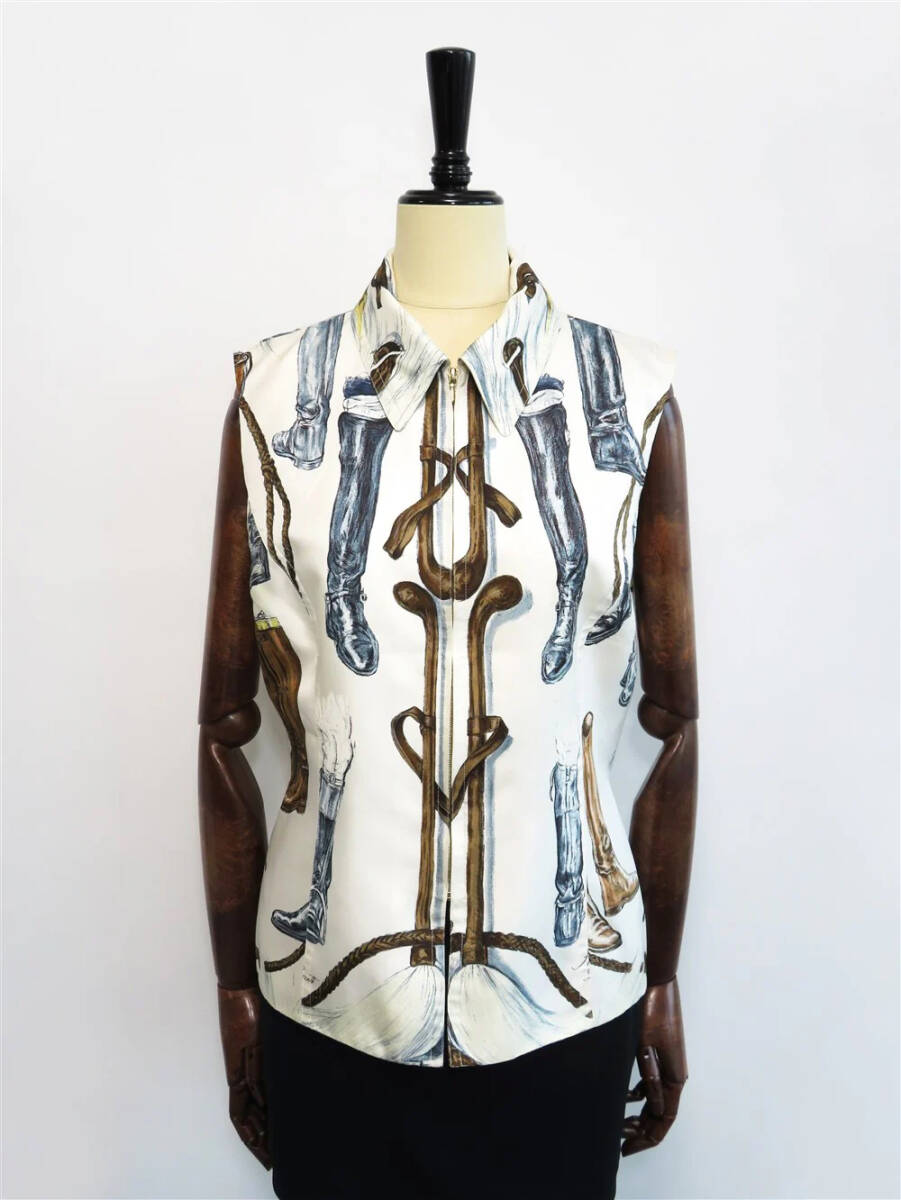 - 70640 HERMES / エルメス ブーツプリント シルク ベスト