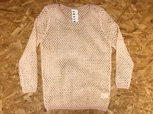 > TOPIO 韓国製 モード ミニマル パイピング ざっくり シースルー フィッシュネット ニット セーター レディース アクリル100% XS ピンク