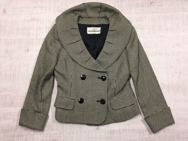- KAZU ITO カズ イトー 千鳥格子ハウンドトゥース ショールカラー ショート丈 ダブル ツイード テーラードジャケット レディース ウール100%