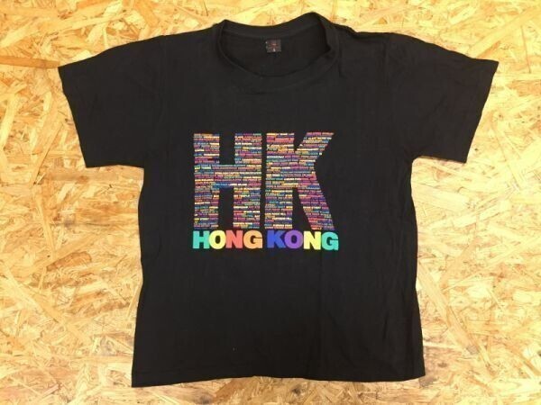 > 香港 HONG KONG スーベニア お土産 旅行 オールド 古着 半袖Tシャツ メンズ フロッキープリント S 黒
