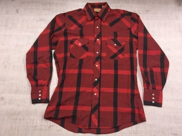 > ランチャー RANCHER 韓国製 90s アメカジオールド レトロ 古着 ウエスタン長袖チェックシャツ メンズ M 赤