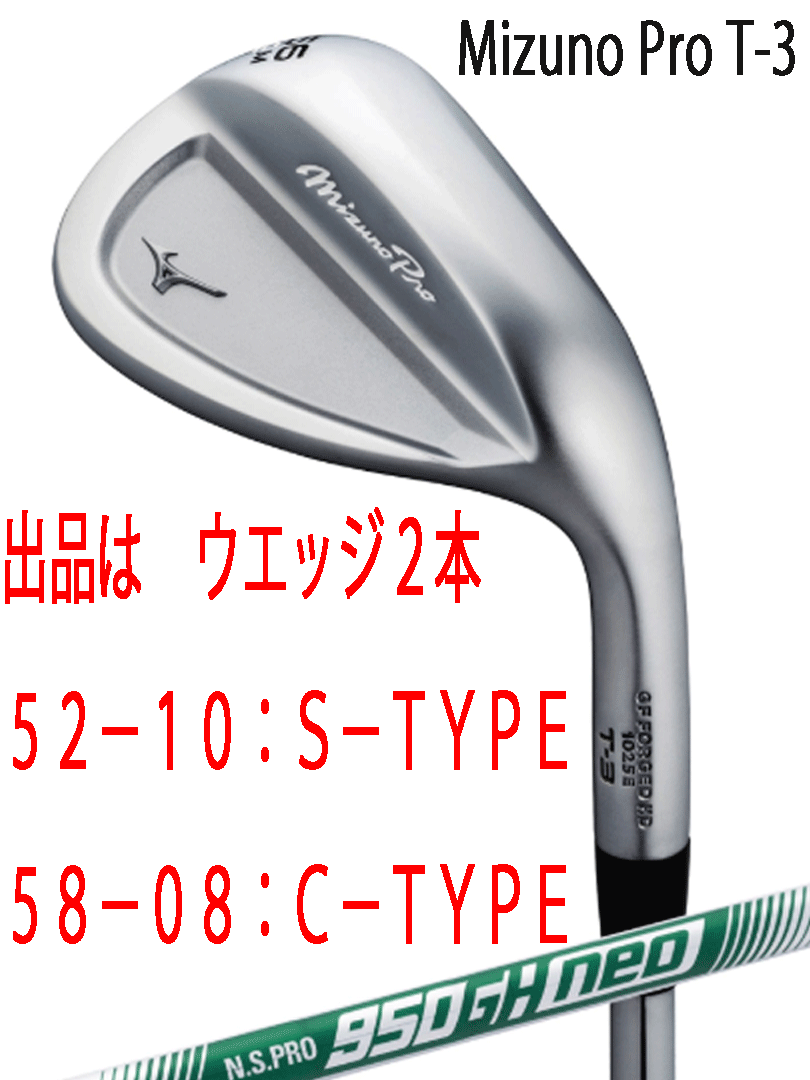 > 新品■2025.7■ミズノ■MIZUNO PRO T-3 WEDGE■ホワイトサテン■ウエッジ2本■52-10:S-TYPE/58-08:C-TYPE■NS PRO950GH neo スチール■S■
