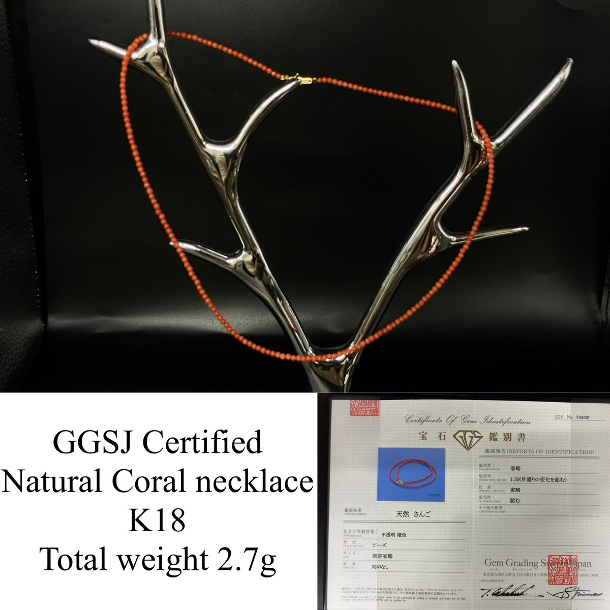 - 赤珊瑚 ネックレス (さんご サンゴ) 宝石鑑別書付き K18 総重量2.7g ネックレス全長約40.5cm 7108YY