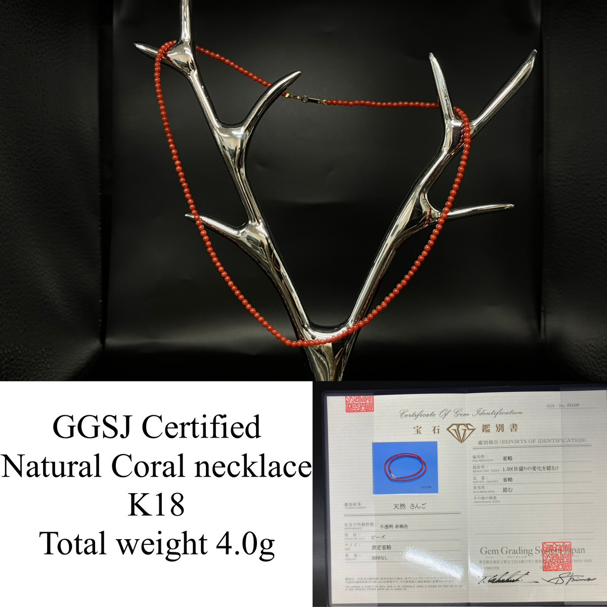 > 赤珊瑚 ネックレス (さんご サンゴ) 宝石鑑別書付き K18 総重量4.075g ネックレス全長約42cm 6593YY