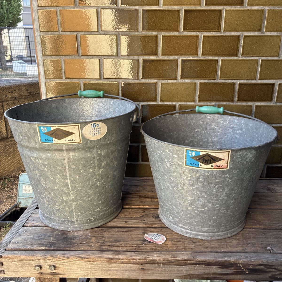 - ブリキ バケツ 2点セット simazu 11.3L 13.5L ガーデニング アンティーク レトロ シャビー ナチュラル 当時物 長期保管品