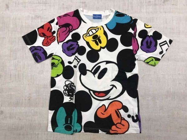 - TOKYO Disney Resort 東京ディズニーリゾート MICKEY ミッキーマウス キャラクター 総柄プリント 半袖Tシャツ メンズ コットン100% S 白