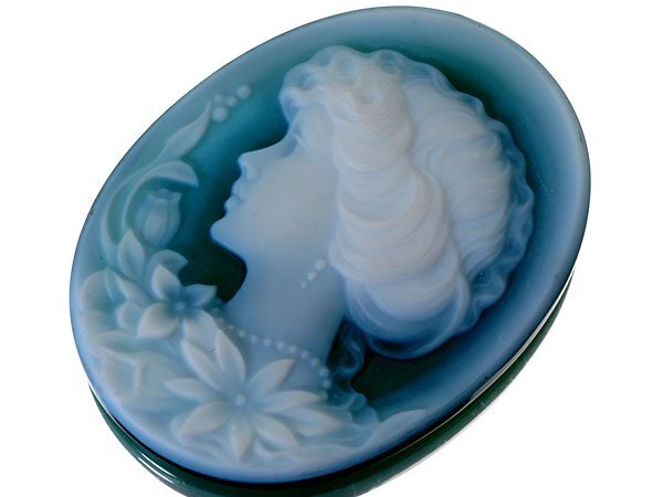 - 【ジュエリー極】可憐な女性の横顔と花の彫刻 高級グリーンストーンカメオルース 40.0mm×30.2mm k928i【送料無料】