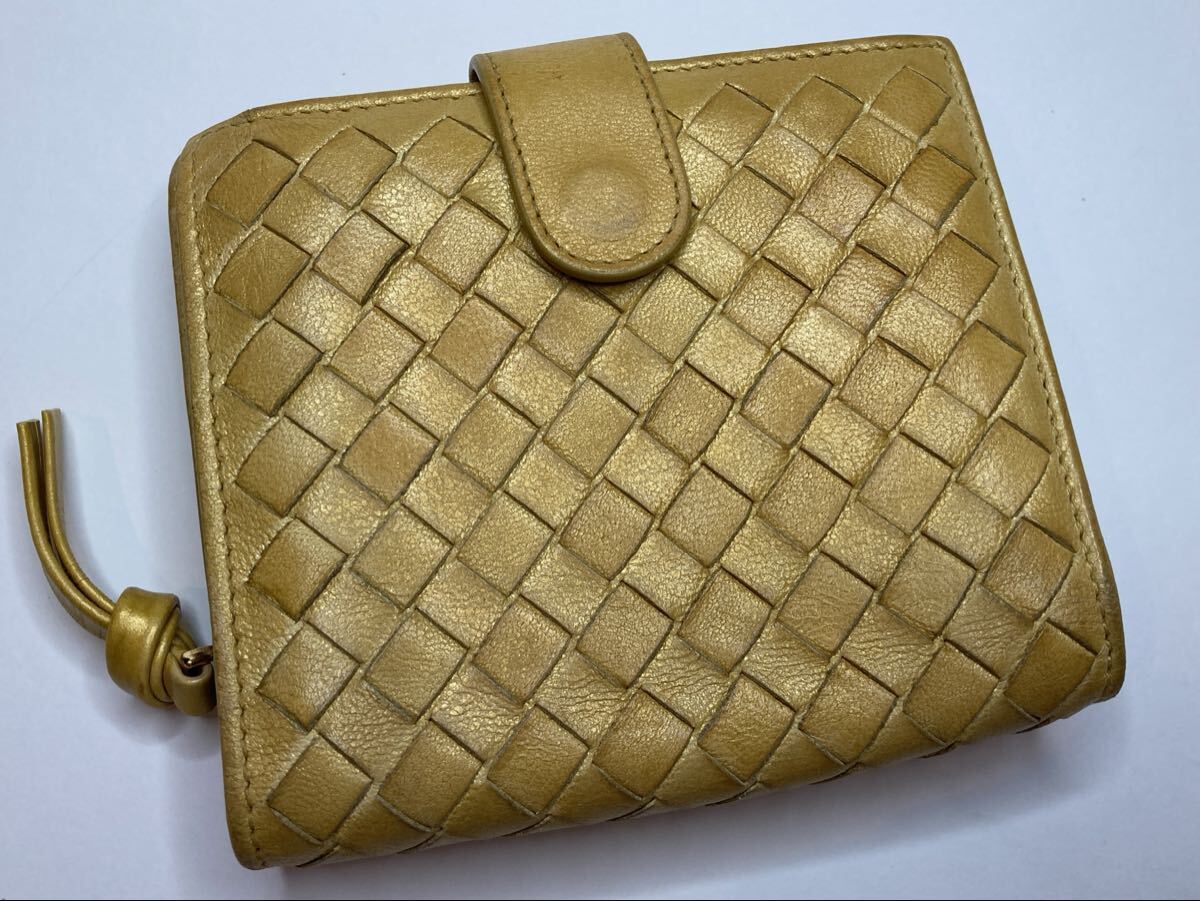 > 1円~ ボッテガヴェネタ BOTTEGA VENETA イントレチャート 財布 二つ折り ラウンドファスナー(小銭入れ) ゴールド系