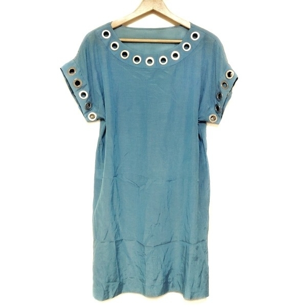 - マイケルコース MICHAEL KORS サイズ4 S - ライトブルー レディース クルーネック/半袖/ミニ/ハトメ ワンピース