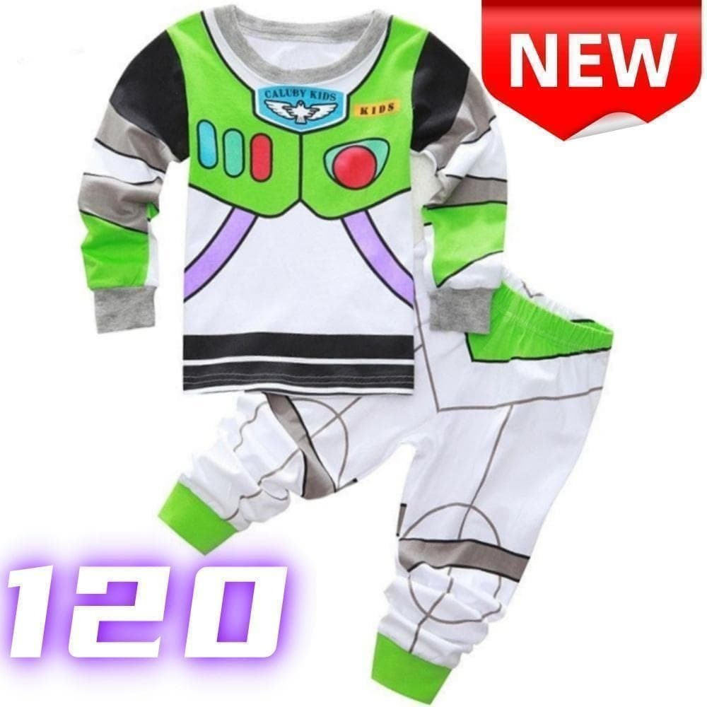 - [新品]バズライトイヤー キッズパジャマ 長袖 上下セット 男の子 子供服 コスプレ風 トイストーリー風 宇宙飛行士 グリーン ホワイト 120cm