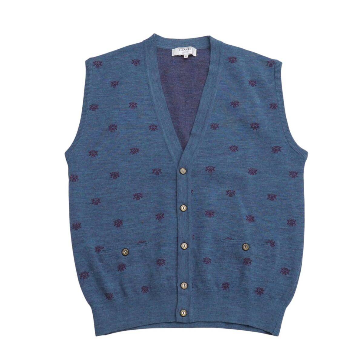 > TJ3551+LANVIN Studio/ランバン*メンズ50*Vネック*ニットベスト/カーディガン*ウール*ハイゲージ*ブルー系