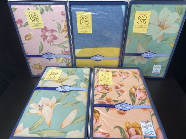 - mm★未使用 綿毛布 麺100% まとめて 5点 シングル 花柄 寝具 毛布 外箱付き 保管品★