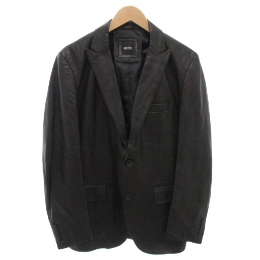 > ヒューゴボス HUGO BOSS テーラードジャケット 革ジャン ラムレザー 2B 50 黒 ブラック 2B /FF ■GY19 メンズ