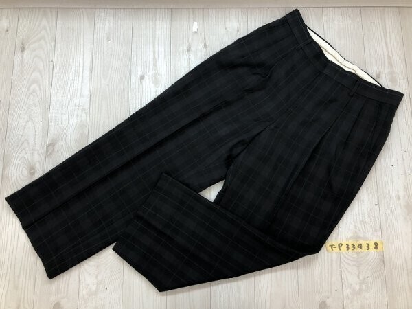 - メンズ チェック柄 ツータック クロップド スラックスパンツ 82 黒紺カーキ