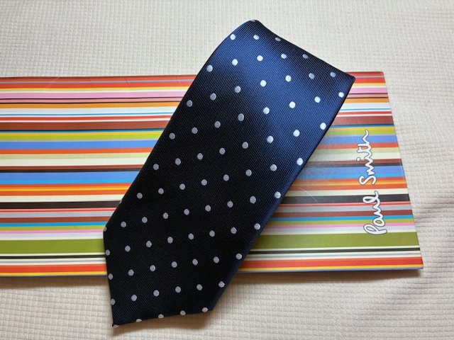 - Paul Smith ポールスミスMade in Italy ネクタイ濃紺ドット柄シルク100