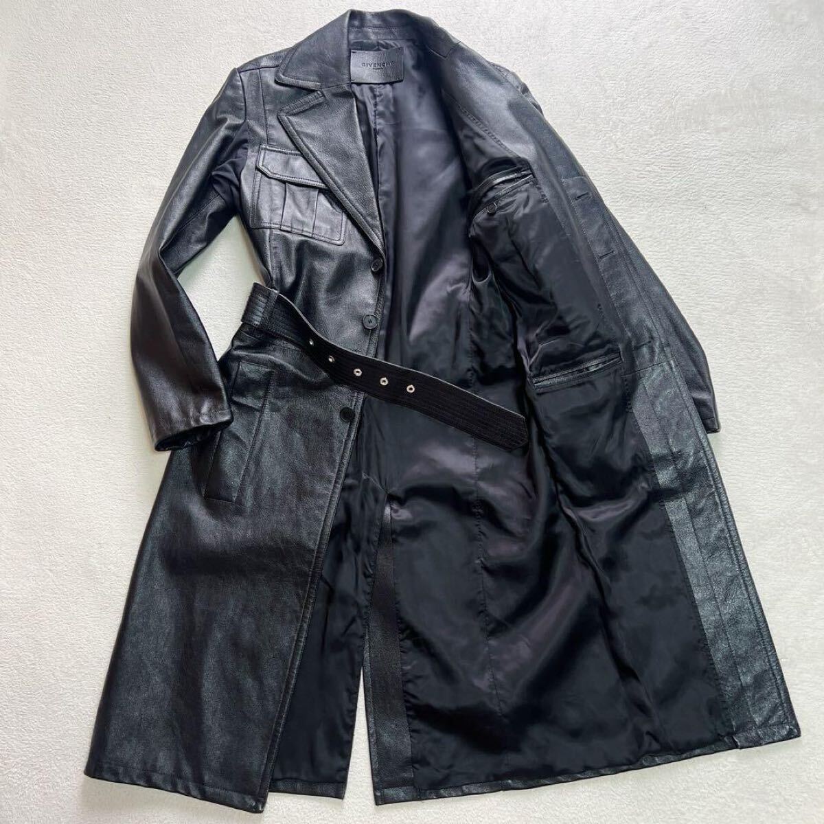 > 希少現行 美品/GIVENCHY ジバンシー レザーコート 牛革 48サイズ L位 レザータグ ロングコート ブラック 黒 カーフスキン
