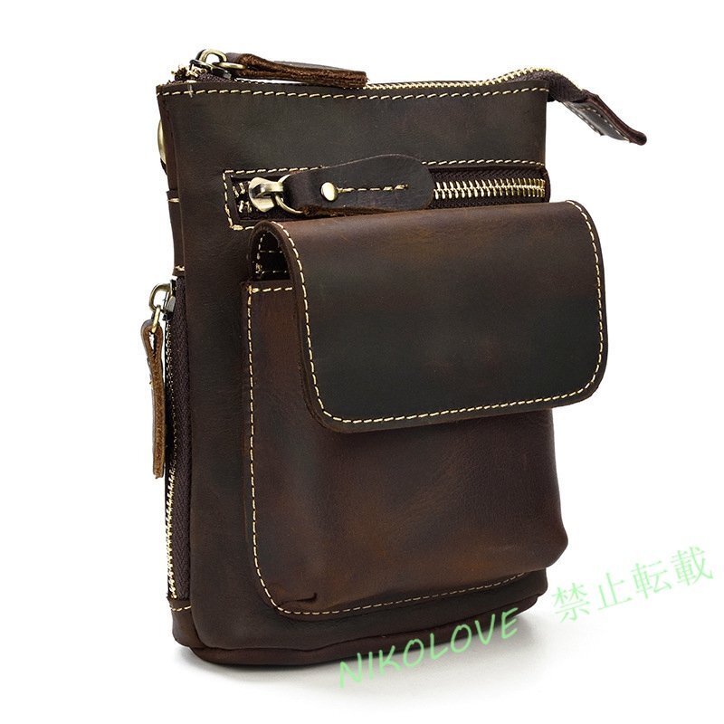 - ☆新品 2way クレイジーホースレザー ヒップバッグ 牛革 本革 ウエストバッグ ショルダーバッグ メンズ バッグ 小物入れ 通勤 仕事