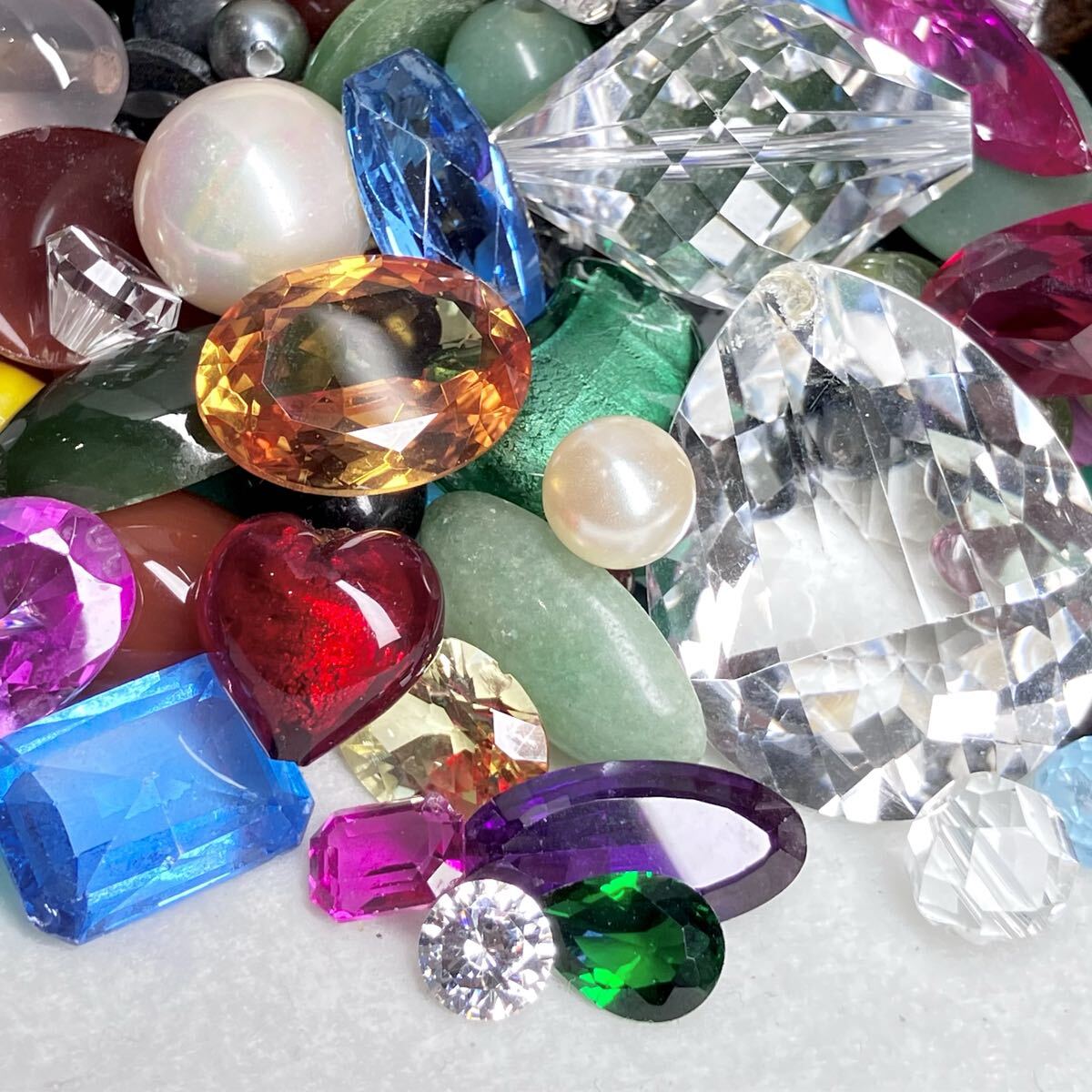 - 大量!!◯色石おまとめ5000ct◯n 約1000g エメラルド サファイア ルビー アメジスト クォーツ パール トルコ石 カメオ ルース w2た4