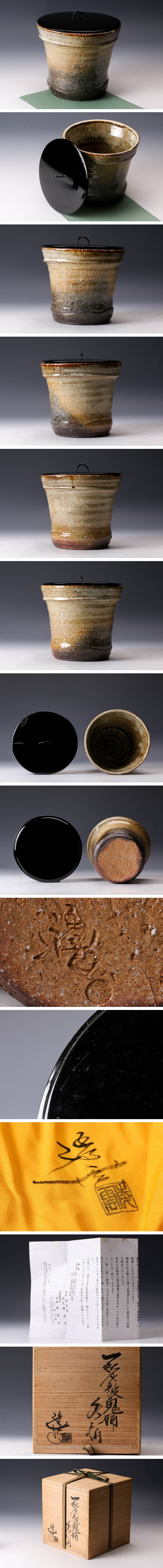 - 【佳香】小久保凌雲 萩灰被鬼桶水指 共箱 共布 栞 塗蓋 茶道具 本物保証