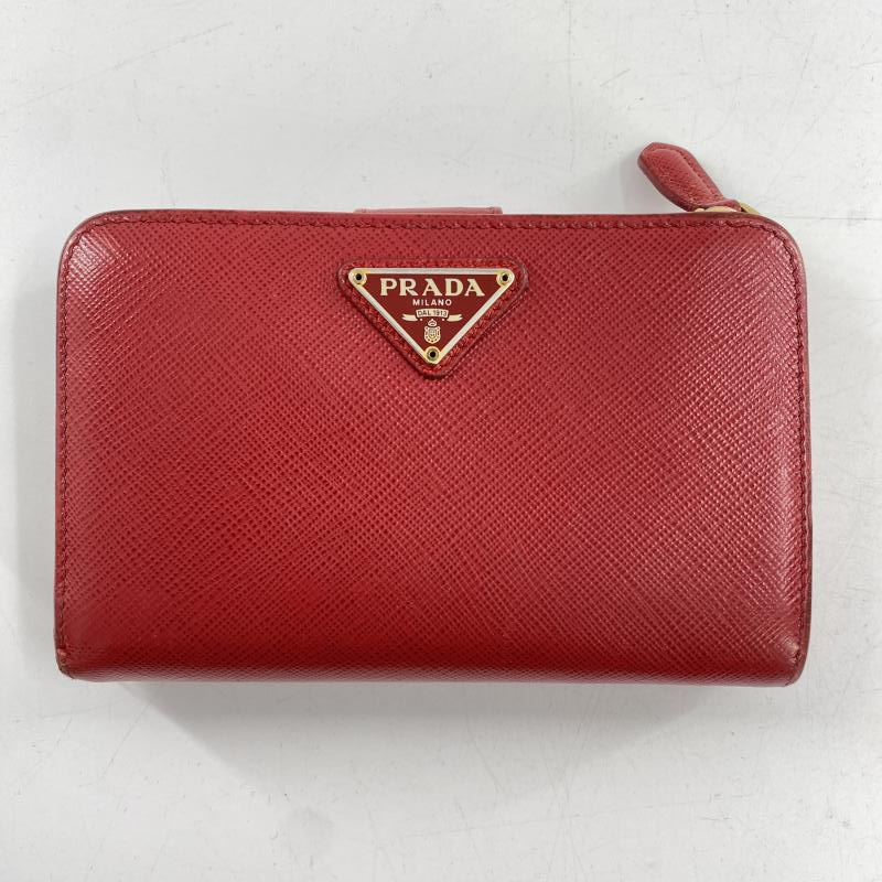 - 【中古】PRADA 二つ折り財布 1ML018 レッド プラダ サフィアーノ[240010493932]