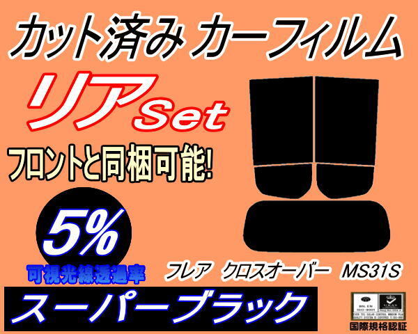 - カーフィルム スーパーブラック カット済み リアセット フレアクロスオーバー MS31S (s) スモーク ガラスフィルム セット MS31 マツダ