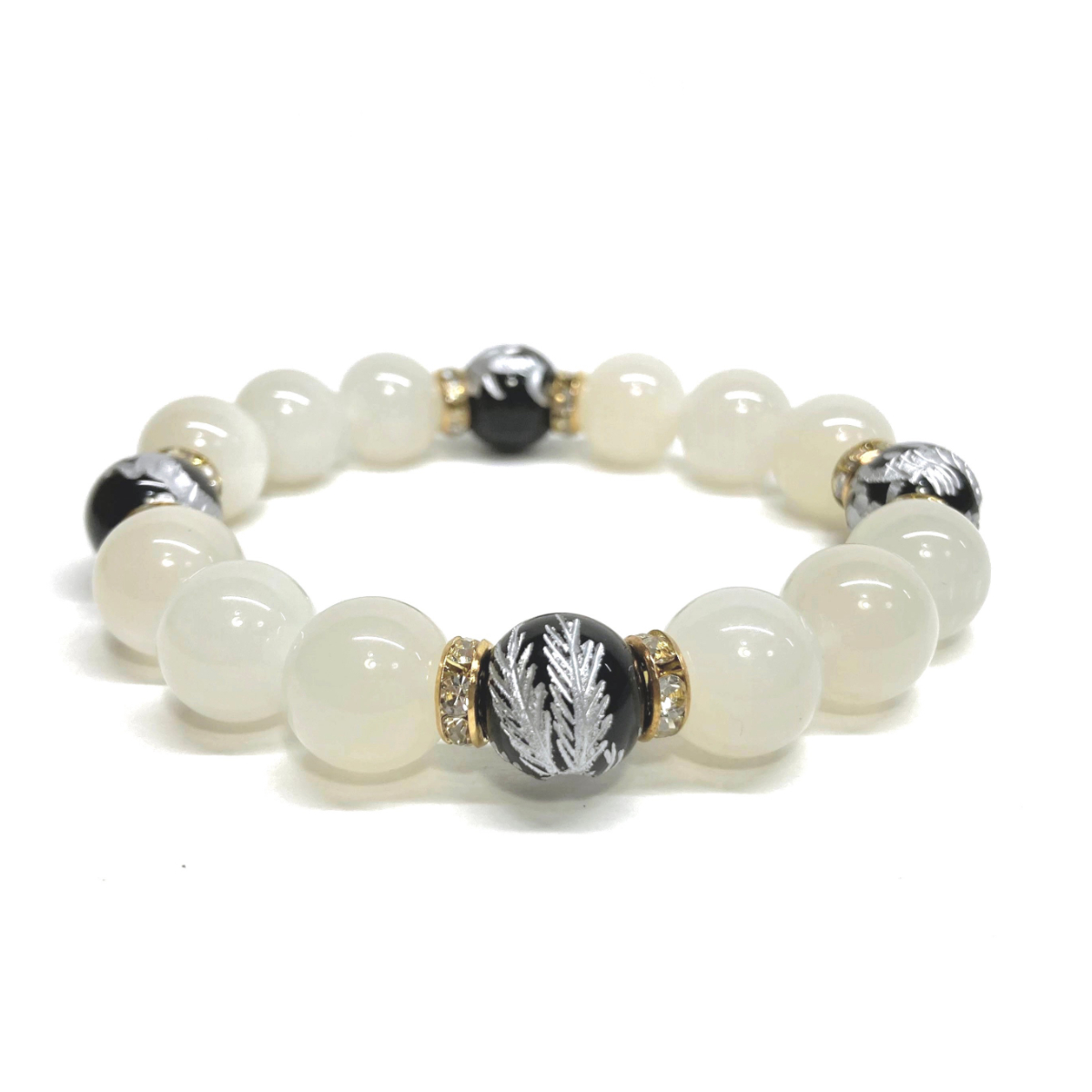 - 四神獣銀彫オニキス×ムーンストーン 12mm パワーストーン ブレスレット天然石 青龍 白虎 玄武 朱雀 運気上昇 開運 金運 お守り 四神相応 G