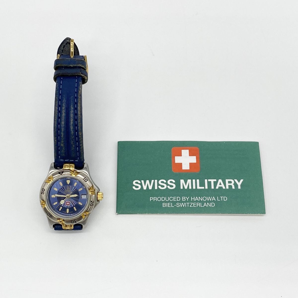 - 【4283Z】SWISS MILITARY スイスミリタリー 腕時計 6-710 青文字盤 3針 クォーツ レザーバンド 説明書 動作未確認 中古品 クリックポスト
