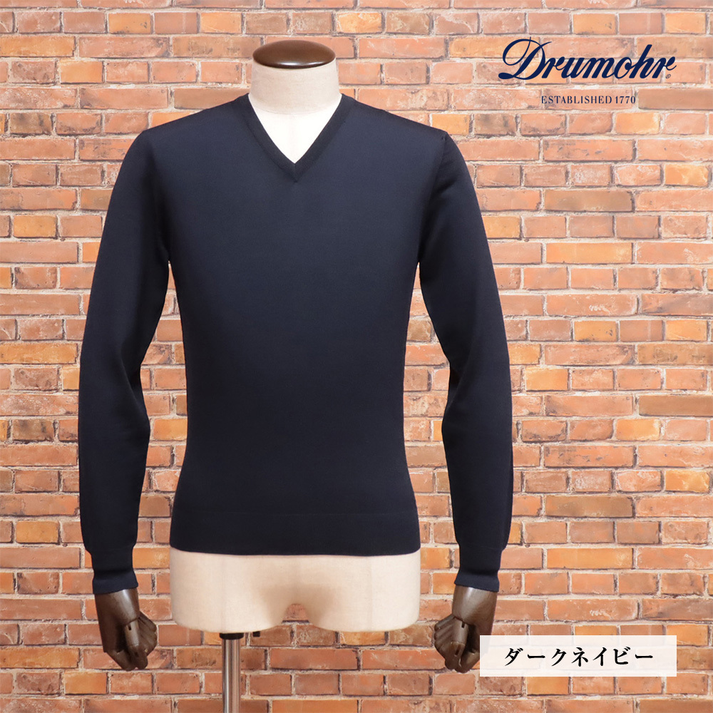 - 1円/24aw/Drumohr/52サイズ/Vネック ニット D0D481 スーパー140’s ウール 無地 イタリア製 セーター 新品/濃紺/ダークネイビー/mb393/