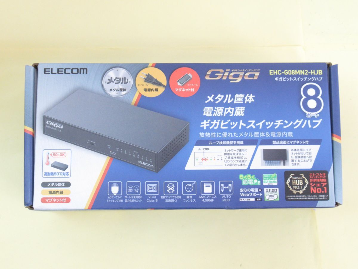 - AN 17-3 未開封 ELECOM エレコム ギガビット スイッチングハブ 8ポート EHC-G08MN2-HJB メタル筐体 電源内蔵 ブラック
