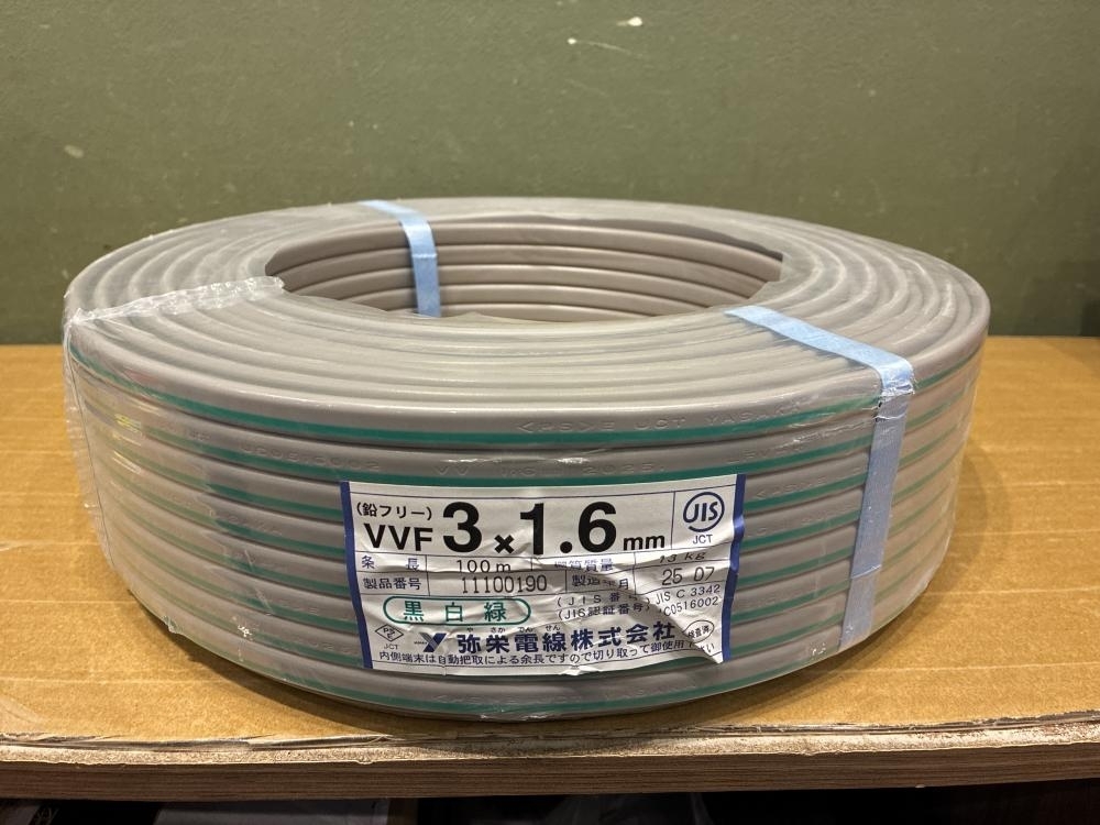 > 021■未使用品・即決価格■弥栄電線 VVFケーブル 3×1.6 黒白緑