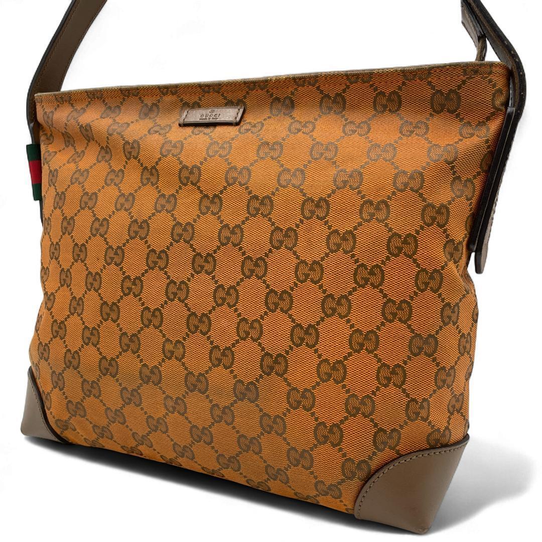 - 良品 GUCCI ショルダーバッグ キャンバス オレンジ GG柄 シェリーライン