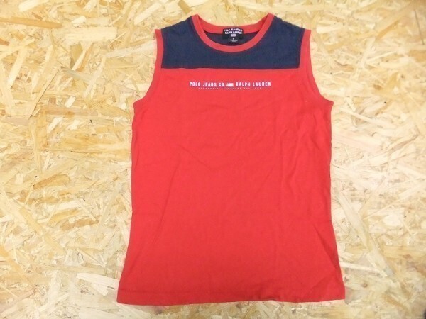 > POLO JEANS COMPANY ポロジーンズ ラルフローレン レディース 綿100% コットン 配色切替え ロゴ ノースリーブTシャツ S 赤紺