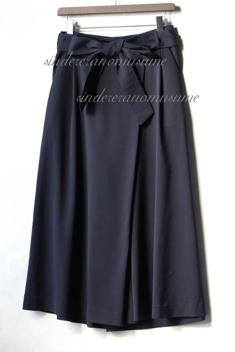 - ★イネド 濃紺ワイドパンツ ウエストリボン スカートズボン★