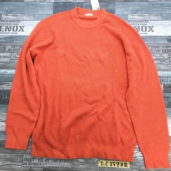 > タグ付き新品!GU ジーユー メンズ クルーネック アクリル セーター L オレンジ