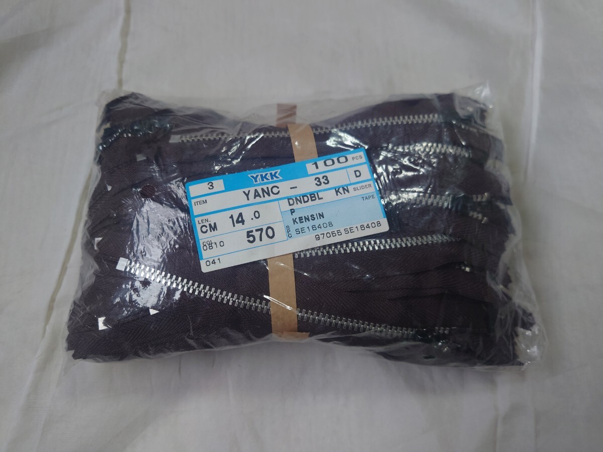 - 【在庫処分】ファスナー 3Y止 14cm 570こげ茶 スライダーDNDBL KN色 100本