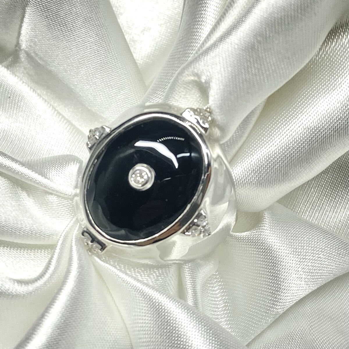 - 良品!!豪華!!ete■オニキス&メレダイヤボリュームリング■ n 約16.9g 14号 エテ シルバー silver 925 レディース メンズ 指輪 onyx C934
