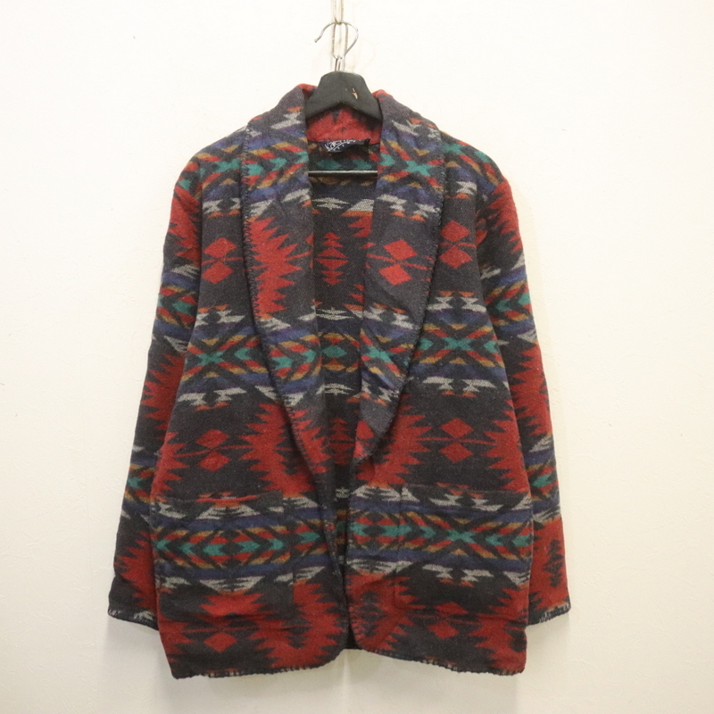 - f993 90sビンテージ KARENKANE ネイティブ 総柄 ウールジャケット■1990年代製 Lサイズくらい アメカジ ストリート サイケ 古着卸 80s 70s