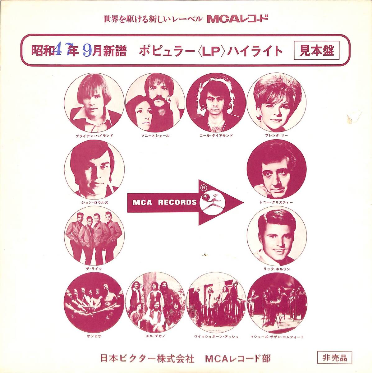 タイトルMCAレコード昭和47年9月新譜 ポピュラーLPハイライト