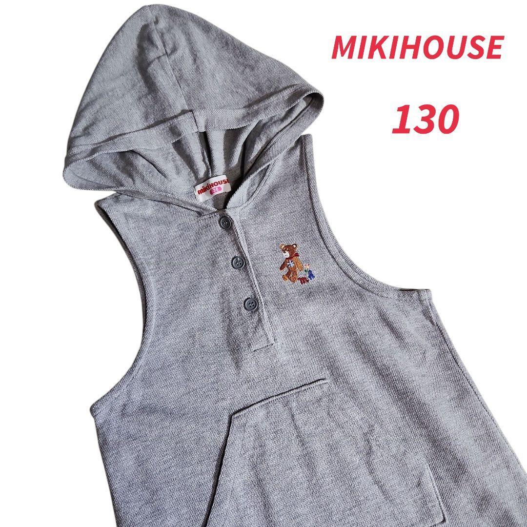 - ミキハウス・ベア刺繍・フード付き ノースリーブ ワンピース 重ね着・レイヤードにも 84717
