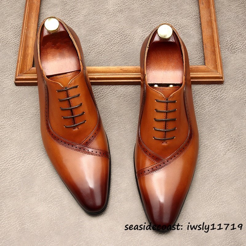 > 最高級◆定価9万 ビジネスシューズ 本革 レザーシューズ メンズ 超希少 職人手作り 牛革 紳士靴 フォーマル 冠婚葬祭 革靴 ブラウン 28.0cm