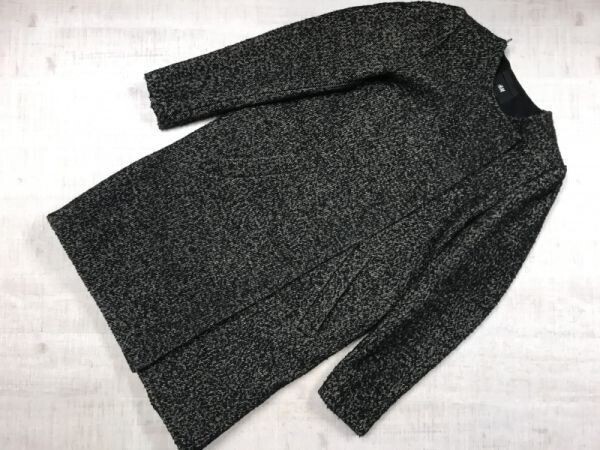 - エイチアンドエム H&M クラシック レトロ モード 古着 ネップ ノーカラー 比翼 ロング ダブル コート レディース 36 黒/白
