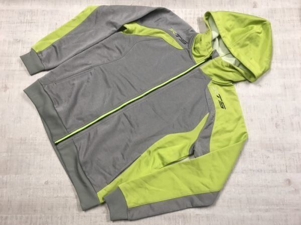 > XTS エックスティーエス スーパースポーツゼビオ XEBIO ジップアップ 配色切替 ジャージー パーカー メンズ M 黄緑 グレー