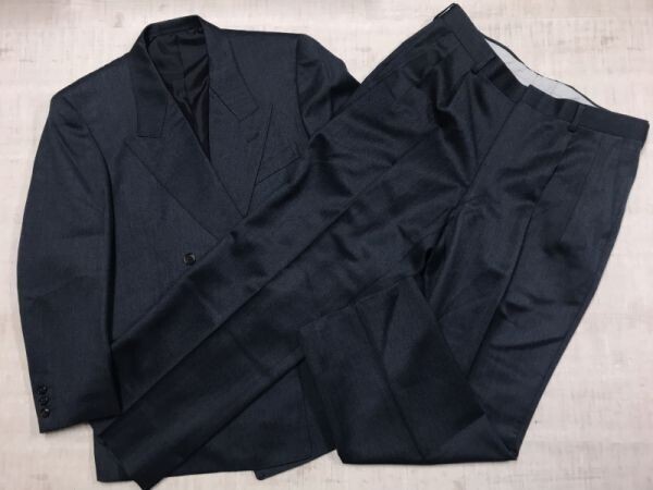 - イエーガー ロンドン JAEGER LONDON トラッド オーダーメイド タック入りスラックス ダブル スーツ上下セットアップ メンズ ウール100% 紺