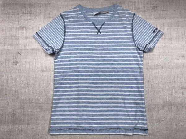 > コロンビア Columbia アメカジ アウトドア ボーダー Vガゼット 半袖Tシャツ メンズ ポリエステル45% コットン45% M 水色