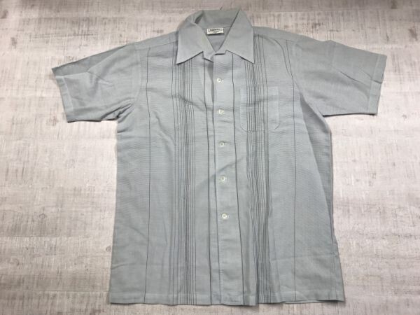 > Hardlion ROCK TOKYO 東京レトロ オールド トラッド 70sライク 国産 古着 開襟オープンカラー ストライプ 半袖シャツ メンズ L グレー