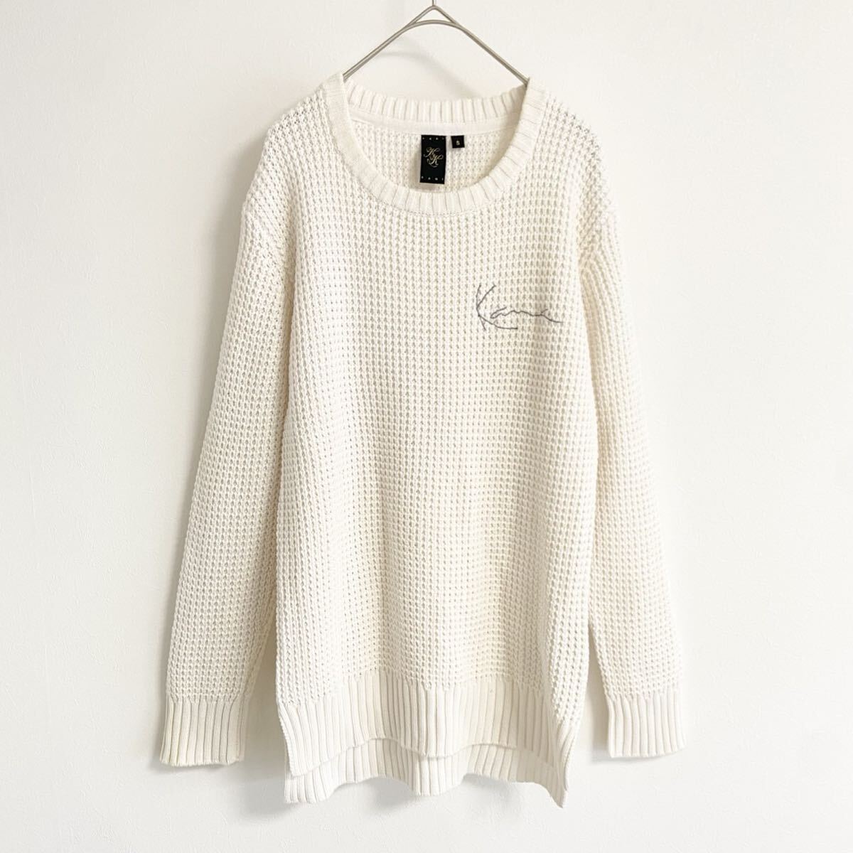- 【カールカナイ】高級上質コットンブレンドワッフルニットセーター/ホワイト/S表記/衝撃プライス!即完売ベーシックワンポイント!F24