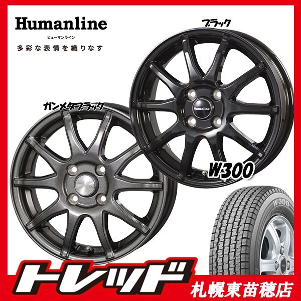 - 東苗穂店 送料無料 新品スタッドレス&ホイールセット BS W300 145/80R12 & ヒューマンライン S-15 12インチ ブラック 軽トラ・軽バン