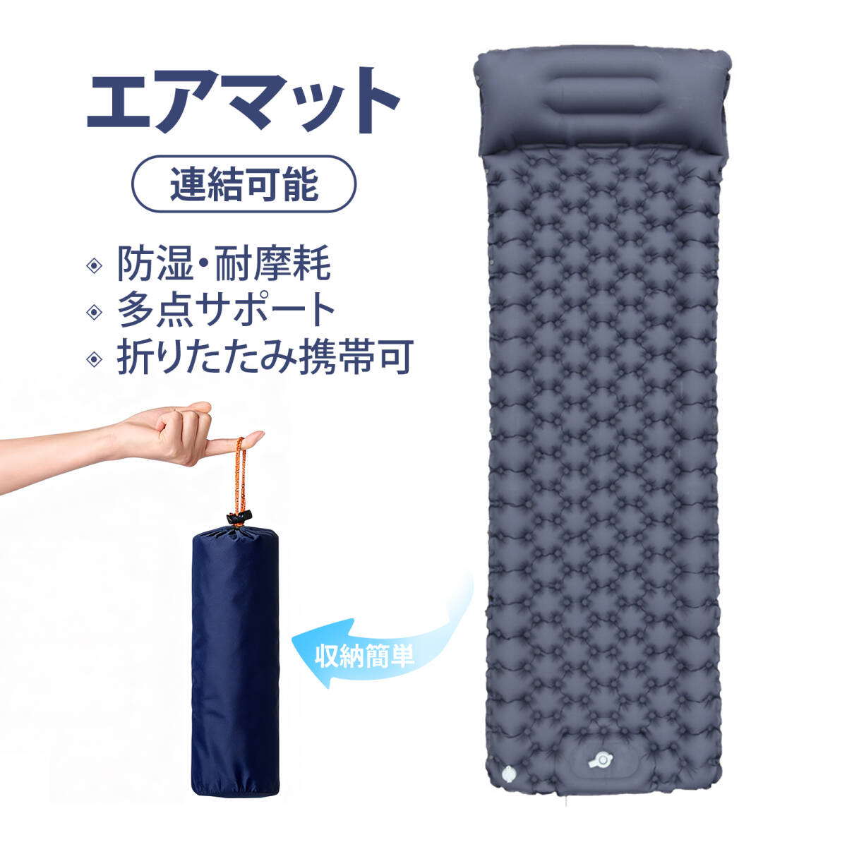 - いんふれーたマット エアーマット キャンプ用品 エアマットレス アウトドア マット キャンプ充気式 シングル 幅広 防水 折りたたみ;J7798;